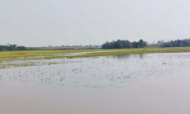 জুড়ী প্রতিনিধি: মৌলভীবাজারের জুড়ীতে গৌরাঙ্গ বিল ও খাই বিলে বৃষ্টির পানি নিষ্কাশন না হওয়ায় এক রাতের বৃষ্টিতে প্রায় তিনশ একর জমির বোরো ধান পানিতে তলিয়ে গেছে। ক্ষতিগ্রস্থ কৃষকরা স্থানীয় কুইয়া ছড়া নদী খননের দাবি জানান। ক্ষতিগ্রস্থ কৃষক বশির উদ্দিন, আতিকুর রহমান, দুলাল মিয়া, জয়নাল আবদীন, বাবুল মিয়া, আব্দুস ছালাম, ফরিজ আলী, মামুনুর রশীদ, ধলু মিয়া প্রমুখ বলেন- জুড়ী উপজেলার পশ্চিম জুড়ী ইউনিয়নের বাছিরপুর, কৃষ্ণনগর, হরিরামপুর, গৌরাঙ্গ ও ধামাই এলাকায় গৌরাঙ্গ বিল ও খাই বিল অবস্থিত। এখানকার বৃষ্টির পানি কুইয়া ছড়া নদী দিয়ে নিষ্কাশন হয়ে হাওরের দিকে প্রবাহিত হয়। উক্ত কুইয়া ছড়া নদী দিয়ে গৌরাঙ্গ বিল ছাড়াও ধলছড়ি, রাঙ্গাউটি ছড়া ও আইনজুড়ী ছড়ার পানি প্রবাহিত হয়। কিন্তু কুইয়া ছড়ায় ধলছড়ি সংযোগ স্থলের নিচের দিক ভরাট হয়ে যাওয়ায় পানি ভাটির দিকে না গিয়ে উজানের দিকে প্রবাহিত হয়। এতে করে গৌরাঙ্গ বিল এলাকায় বিশাল জলাবদ্ধতার সৃষ্টি