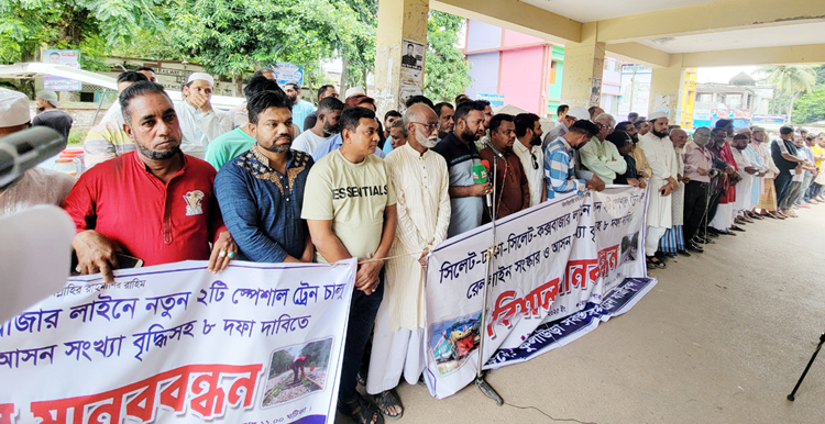 বক্তারা বলেন, সিলেট-ঢাকা, সিলেট- কক্সবাজার রেলপথে ২টি স্পেশাল ট্রেন চালু, আখাউড়া- সিলেট রেলপথ সংস্কার ও ডাবল লাইনে উন্নীতকতরণ, আখাউড়া-সিলেট সেকশনে অন্ত:ত একটি লোকাল ট্রেন চালু আখাউড়া-সিলেট সেকশনে সকল বন্ধ স্টেশন চালুকরণ, কুলাউড়া জংশন স্টেশনে বরাদ্ধকৃত আসন সংখ্যা বৃদ্ধি, সিলেট-ঢাকাগামী আন্ত:নগর কালনী ও পারাবত ট্রেনের আজমপুরের পর ঢাকা অভিমুখী সকল স্টেশনের যাত্রা বিরতী প্রত্যাহার। সিলেটের সাথে চলাচলকারী ট্রেনের সিডিউল বিপর্যয় রোধে ত্রুটিমুক্ত ইঞ্জিন যুক্ত করা। যাত্রী অনুপাতে প্রতিটি ট্রেনে অতিরিক্ত বগি সংযোজন করতে হবে।