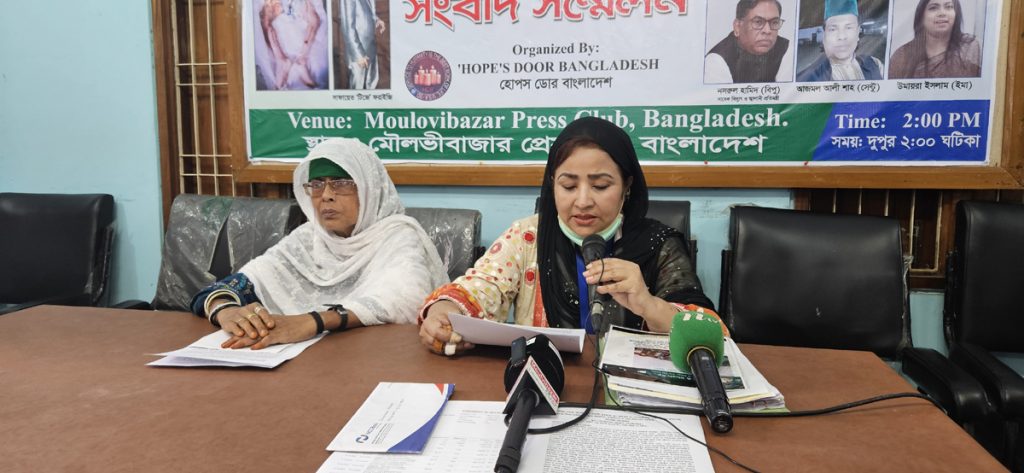 সোমবার (১১ আগস্ট) বিকেল ৩ টায় মৌলভীবাজার প্রেসক্লাবে সংবাদ সম্মেলন করে এমন অভিযোগ করেন মানবাধীকার কর্মী, হোপস ডোর বাংলাদেশ এর চেয়ারম্যান ও আমেরিকান প্রবাসী শামীমুন নাহার।