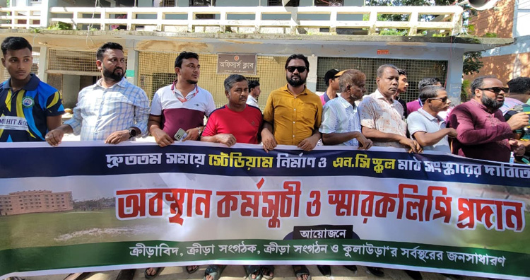 মাদক এবং বিভিন্ন রকম অপরাধের সঙ্গে সম্পৃক্ত হয়ে যাবে। আমরা সরকারের উর্দ্ধতন কর্মকর্তাদের দৃষ্টি আকর্ষণ করছি, অচিরেই মাঠটিকে খেলার উপযোগী করে তুলতে সংস্কারের জন্য প্রয়োজনীয় উদ্যোগ নিতে হবে এবং কুলাউড়ায় একটি স্টেডিয়াম যেন দ্রুত নির্মাণ করা হয়। এসকল দাবি