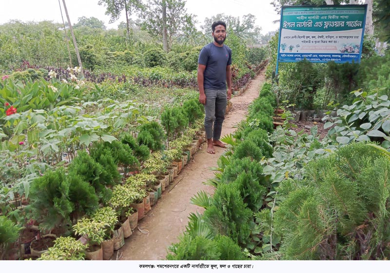 প্রকৃতিতে এখনো সতেজতা। এরমধ্যে নার্সারীগুলোতে চলছে চারা উৎপাদন ও বিক্রির হিড়িক চলছে। গাছ লাগানো ও বাগান করার উপযুক্ত মৌসুম অতিবাহিত হচ্ছে। এই মৌসুমেই মৌলভীবাজারের কমলগঞ্জের নার্সারী পল্লীগুলো সবুজ প্রকৃতি গড়ার ভা-ার ও অক্সিজেন যোগানোর এক অদম্য কারখানা হিসাবে পরিচিত। নার্সারীগুলোতে চা বাগানের বেকার শত শত নারী পুরুষ খুঁজে পেয়েছেন কর্মসংস্থানের সন্ধানও। উৎপাদিত গাছ ও ফুল ফলের চারা বিক্রি করে ব্যাপক সাফল্য লাভ করছেন নার্সারী মালিকরা। চা বাগান, বনাঞ্চল আর কৃষি অধ্যুষিত কমলগঞ্জ উপজেলায় নার্সারী ব্যবসায় বিপ্লব দেখা দিয়েছে। সবুজ প্রকৃতি গড়ার কারিগর নার্সারী মালিকরা হাট বাজারে, রাস্তার ধারে এবং গ্রামের বাড়িতে বাড়িতে গড়ে তুলছেন নার্সারী শিল্প। বাণিজ্যিক ভিত্তিতে গড়ে উঠা ছোট বড় নার্সারীর মালিকরা চারা বিক্রি করে সফলতা লাভ করছেন। নার্সারী মালিকদের কেউ কেউ রয়েছেন প্রশিক্ষিতও। ফুল, ফল, বনজ ও ঔষধি জাতের চারা উৎপাদনে বাহারি রঙ্গের চারায় ভরপুর রয়েছে এসব নার্সারী। সরেজমিন ঘুরে জানা যায়, উপজেলার বিভিন্ন স্থানে প্রায় শতাধিক নার্সারী গড়ে উঠেছে। শমশেরনগর বাজার থেকে কুলাউড়া ও পতনঊষার সড়কে এবং শ্রীসূর্য্য গ্রামের বিভিন্ন এলাকায় রয়েছে অর্ধশতাধিক নার্সারী। জমি ইজারা নিয়ে কিংবা নিজস্ব জমিতে নার্সারী গড়ে তুলেছেন। গত কয়েক বছর যাবত নার্সারী সমুহে দেশী-বিদেশী নানা প্রজাতির গাছ, ফুল ও ফলের চারা উৎপাদন ও বিক্রয় করছেন। দেশীয় প্রজাতির বনজ, ফলজ, ঔষধী ও বিভিন্ন প্রজাতির ফুল গাছের চারার চাহিদা রয়েছে নার্সারীগুলোতে। তবে বিদেশী প্রজাতির আকাশমনি গাছ নিষিদ্ধ হওয়ায় অনেকেই পড়েছেন বিপাকে। দূর-দূরান্ত থেকে আসা যাওয়ার সময় লোকজন এসব নার্সারী থেকে চারা কিনে নিজ নিজ বাড়ির আঙ্গিনা ও পতিত জমিতে বাগান গড়ে তুলছেন। উপজেলার শমশেরনগর ও পতনউষার ইউনিয়নেই রয়েছে বাহারী নমুনার একাধিক নার্সারী। এসব নার্সারীতে চা বাগানসহ স্থানীয় শ্রমিকরা খোঁজে নিয়েছেন আয়ের পথ। এক একটি নার্সারীতে সাত, আট জন থেকে শুরু করে পনের, বিশ জন করে শ্রমিক নিয়োজিত রয়েছেন। চা বাগানের বেকার নারী ও পুরুষকরা দৈনিক ভিত্তিতে নার্সারীগুলো কাজ করে জীবিকা নির্বাহ করছেন।