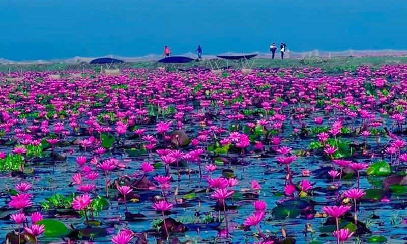 পিন্টু দেবনাথ: শ্রীমঙ্গলে অন্যরকম নান্দনিক দৃশ্য ফুটে উঠেছে লাল শাপলা বিল। এটি উপজেলার মির্জাপুর ইউনিয়নের হাইল হাওর এলাকায়। এ যেন প্রকৃতির নিপুণ আঁচড়ে আঁকা এক বিস্তীর্ণ জলরূপ। ভোরের প্রথম আলোয় হাওরের বুকে ভেসে ওঠে হাজারো লাল শাপলার সমাহার; দূর থেকে মনে হয় পানির ওপর বিছিয়ে আছে অনন্ত লালের নীরব গালিচা। এই অদ্ভুত মোহময় দৃশ্য এখন প্রতিদিনই টেনে আনছে দেশের নানা প্রান্তের প্রকৃতিপ্রেমী ও ভ্রমণপিপাসু মানুষকে।
