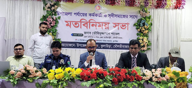 মৌলভীবাজারের নবাগত জেলা প্রশাসক তৌহিদুজ্জামান পাভেল বলেছেন, আসন্ন ত্রয়োদশ জাতীয় সংসদ নির্বাচন বিগত ৮-১০টি নির্বাচনের মতো নয়। ওই নির্বাচনটি হবে একটি ঐতিহাসিক নির্বাচন। এটা আমাদের প্রধান উপদেষ্ঠা মহোদয় শতবছরের মধ্যে একটি চ্যালেঞ্জিং নির্বাচন বলে অ্যাখায়িত করেছেন। রোববার বিকেলে কুলাউড়া উপজেলা প্রশাসন আয়োজিত উপজেলা পর্যায়ের কর্মকর্তা ও সুধীসমাজের প্রতিনিধিদের সাথে মতবিনিময় সভায় প্রধান অতিথির বক্তব্যে তিনি এসব কথা বলেন। তিনি বলেন, আসন্ন নির্বাচনকে আমরা যদি নিরপেক্ষ ও সুষ্ঠভাবে সম্পন্ন করতে না পারি তাহলে জুলাই আন্দোলনে যারা দেশের জন্য আত্মত্যাগ করেছেন তাদের আত্মা শান্তি পাবেনা। এজন্য এটা বিগত নির্বাচনগুলোর মতো নয়, কারণ এখানে গণভোটের বিষয় আছে। গণভোট ও আসন্ন নির্বাচনের যে ভোট আগামী ১০০ বছরের বাংলাদেশ কোন দিকে যাবে তার গতিপথ নির্ধারণ করে দিবে। এই নির্বাচনে তরুণ সমাজের যে ইচ্ছা ও পরিকল্পনা বাস্তবায়ন হবে যদি সুষ্ঠু নিরপেক্ষ নির্বাচন উপহার দিতে পারি। সুষ্ঠু ও নিরপেক্ষ নির্বাচন উপহার দেবার জন্য মৌলভীবাজার জেলা প্রশাসন ও উপজেলা প্রশাসনের কর্মকর্তারা শতভাগ সৎ থেকে নিষ্ঠার সাথে কাজ করবেন। নির্বাচন সুষ্ঠুভাবে সম্পন্ন করতে পারলে প্রশাসনের সার্থকতা হবে বলে সমন্বিতভাবে সবাইকে নিয়ে কাজ করার অঙ্গীকার ব্যক্ত করেন। কুলাউড়াসহ পর্যটন জেলা মৌলভীবাজারে পর্যটকদের নানা অনকূল পরিবেশ তৈরি করতে হাকালুকি হাওর, কালাপাহাড়, পর্যটন কেন্দ্রগুলোতে প্রয়োজনীয় আবাসন তৈরিসহ ওয়াচ টাওয়ার নির্মাণের আশ^াস প্রদান করেন। কুলাউড়া শহরের যানজট নিরসনে স্থানীয়ভাবে উপজেলা প্রশাসনসহ সংশ্লিষ্ট সকলের সহযোগিতায় দ্রুত পদক্ষেপ নেয়ার নির্দেশনা দেন। উপজেলা নির্বাহী কর্মকর্তা মো. মহিউদ্দিনের সভাপতিত্বে মতবিনিময় সভায় বক্তব্য দেন উপজেলা স্বাস্থ্য ও পরিবার পরিকল্পনা কর্মকর্তা ডাঃ জাকির হোসেন, কুলাউড়া থানার ওসি মো. ওমর ফারুক, উপজেলা বিএনপির সভাপতি জয়নাল আবেদীন বাচ্চু, সম্পাদক বদরুজ্জামান সজল, উপজেলা জামায়াতের নায়েবে আমীর জাকির হোসেন, সেক্রেটারি বেলাল আহমদ চৌধুরী, ইউপি চেয়ারম্যান আজিজুর রহমান মনির ও জিমিউর রহমান চৌধুরী, ব্যবসায়ী কল্যাণ সমিতির সাধারণ সম্পাদক আতিকুর রহমান আখই, কুলাউড়া প্রেসক্লাব সভাপতি এম শাকিল রশীদ চৌধুরী, সাংবাদিক মোক্তাদির হোসেন, চৌধুরী আবু সাঈদ ফুয়াদ, নাজমুল বারী সোহেল, মাহফুজ শাকিল, ওয়ারিয়ার্স অব জুলাই মৌলভীবাজার জেলার সদস্য সচিব জাহিদুল ইসলাম, সদস্য আল আদনান চৌধুরী, বৈষম্যবিরোধী ছাত্র আন্দোলনের প্রতিনিধি নাহিদুর রহমান ও শামীম আহমদ প্রমুখ। সভায় উপজেলা প্রশাসনের বিভিন্ন দপ্তরের কর্মকর্তা, জনপ্রতিনিধি, রা