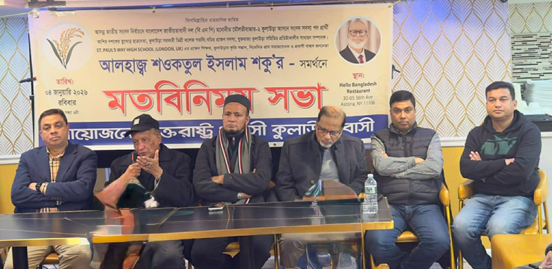 বিশেষ প্রতিনিধি: মৌলভীবাজার-২ কুলাউড়া আসনে বিএনপি মনোনীত প্রার্থী আলহাজ্ব শওকতুল ইসলাম শকুর ধানের শীষ প্রতীকের সমর্থনে নিউইয়র্কে কুলাউড়াবাসীর আয়োজনে ৪ জানুয়ারী রবিবার সন্ধ্যায় এস্টোরিয়ার হ্যালো বাংলাদেশ রেস্টুরেন্টে এক মতবিনিময় সভা অনুষ্ঠিত হয়। নিউজার্সি ষ্টেট বিএনপির সভাপতি ও বহির্বিশ্ব জাতীয়তাবাদী ফোরাম কুলাউড়া উপজেলার সাধারণ সম্পাদক, সৈয়দ জুবায়ের আলীর সভাপতিত্বে এবং সাবেক ছাত্রদল নেতা ও কমিউনিটি এক্টিভিষ্ট কয়ছর রশীদ এর পরিচালনায় সভায় প্রধান অতিথি ছিলেন বিএনপি কেন্দ্রিয় নির্বাহী কমিটির সদস্য ও যুক্তরাষ্ট্র বিএনপির সাবেক সাধারণ সম্পাদক জিল্লুর রহমান জিল্লু। ধানের শীষের প্রার্থী শওকতুল ইসলাম শকু টেলিকনফারেন্সে বক্তব্য রাখেন- এবং একজন প্রবাসী হিসেবে তাঁকে নির্বাচিত করতে সকলের সর্বাত্মক সহযোগিতা কামনা করেন ।