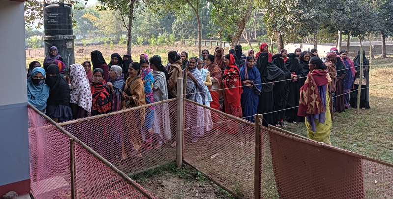 করের গ্রাম সরকারি প্রাথমিক বিদ্যালয় ভোট কেন্দ্রের নারী ভোটার পলি আক্তার, কুলছুমা আক্তার, সাবিনা আক্তার, তাইয়্যিবা বেগমসহ অনেকেই বলেন, সকালে ভোট দিলে অনেক স্বস্তিতে দেওয়া যায়। দেরিতে ভোট দিলে লাইনে দাঁড়াতে হয় এবং প্রচন্ড রোদ থাকে। তখন আমাদের অনেক কষ্ট হয়ে যায়। তাই আমাদের পরিবারের সবাইকে নিয়ে সকালেই চলে এসেছি ভোট দিতে। নবীন চন্দ্র সরকারি মডেল উচ্চ বিদ্যালয় কেন্দ্রের প্রিজাইডিং অফিসার প্রীতম শিকদার জয় বলেন, শান্তিপূর্ণভাবে ভোটগ্রহণ চলছে। সকাল দশটা পর্যন্ত মোট ৩ হাজার ৮৮৭ ভোটের মধ্যে প্রায় ৩শত ভোট কাস্টিং হয়েছে। তবে নারী ভোটারের উপস্থিতি অনেক বেশি।