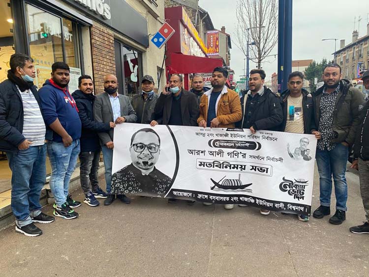 বিশ্বনাথ উপজেলার ২ নং খাজাঞ্চি ইউনিয়ন পরিষদ নির্বাচনে চেয়ারম্যান পদপ্রার্থী আরশ আলী গণীর নৌকা মার্কা সমর্থনে নির্বাচনী গণ সভা অনুষ্টিত হয়েছে ফ্রান্সে ৷ ফ্রান্স থেকে এ,কে,মামুন জানান: গত তেইশ জানুয়ারি রবিবার প্যারিসের এক অভিজাত রেস্টুরেন্টে খাজান্জী ইউনিয়ন পরিষদের প্রবাসিদের আয়োজনে চেয়ারম্যান পদপ্রার্থী ‘আরশ আলী গণীর ‘ নৌকা মার্কা সমর্থনে নির্বাচনী সভা অনুষ্টিত হয়েছে ৷ উক্ত মতবিনিময় সভায় , আশিক মিয়ার সভাপতিত্বে, মো : আবু তারেকের পরিচালনায় , সিলেট ( ২) বিশ্বনাথ আসনের সাবেক সংসদ সদস্য শফিকুর রহমান ও চেয়ারম্যান পদপ্রার্থী আরশ আলী গণী ভিডিও কনফারেন্সের মাধ্যমে বক্তব্য রাখে প্রধান অতিথি হিসেবে বক্তব্য রাখেন,