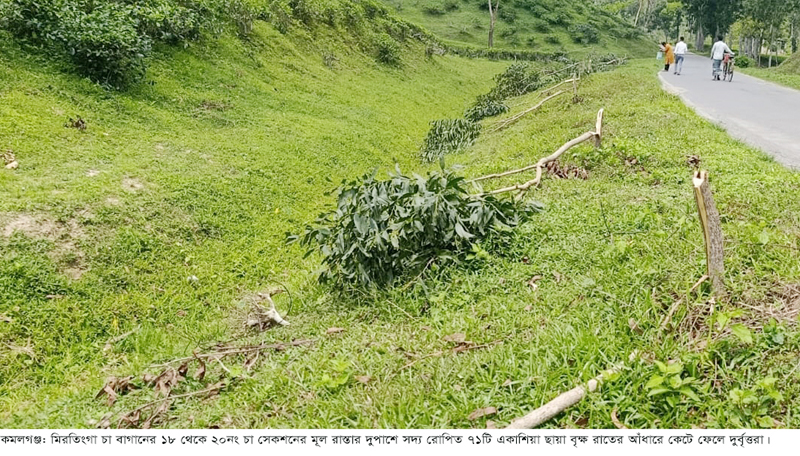 দেউন্দি টি কোম্পানী লিমিটেডের অধীনস্থ মৌলভীবাজারের কমলগঞ্জ উপজেলার ১নং রহিমপুর ইউনিয়নের মিরতিংগা চা বাগানে সাম্প্রতিক সময়ে গাছ ও অবকাঠামো চুরির ঘটনা উদ্বেগজনকভাবে বৃদ্ধি পেয়েছে। একের পর এক চুরির ঘটনায় বাগান কর্তৃপক্ষ যেমন দুশ্চিন্তায় পড়েছে, তেমনি হুমকির মুখে পড়েছে দেশের একটি গুরুত্বপূর্ণ বৈদেশিক মুদ্রা অর্জনকারী শিল্প প্রতিষ্ঠান। বাগান কর্তৃপক্ষ সূত্র জানায়, মিরতিংগা চা বাগান প্রতিবছর সরকারের কোষাগারে উল্লেখযোগ্য পরিমাণ রাজস্ব প্রদান করে থাকে। কিন্তু সম্প্রতি ঘটে যাওয়া ধারাবাহিক চুরির ঘটনায় বাগানের স্বাভাবিক কার্যক্রম ব্যাহত হচ্ছে এবং দীর্ঘমেয়াদি উন্নয়ন পরিকল্পনাও অনিশ্চয়তার মুখে পড়েছে। চলতি বছরের ২ এপ্রিল ৩টি এবং ১৬ এপ্রিল একটি ছায়া বৃক্ষ চুরি হয়। এসব গাছের আনুমানিক বাজারমূল্য প্রায় ১ লাখ ৫০ হাজার টাকা। ঘটনাগুলো স্থানীয় থানায় লিখিতভাবে জানানো হলে আইনশৃঙ্খলা বাহিনী প্রাথমিক কিছু পদক্ষেপ গ্রহণ করে, যার ফলে কিছুদিন পরিস্থিতি নিয়ন্ত্রণে ছিল। কিন্তু সেই স্থিতি বেশিদিন স্থায়ী হয়নি। এদিকে গত ২২ এপ্রিল বুধবার গভীর রাতে আবারও বড় ধরনের নাশকতার ঘটনা ঘটে। রাত আনুমানিক ১১টার দিকে মিরতিংগা চা বাগানের ১৮ নম্বর সেকশন থেকে ২০ নম্বর সেকশন পর্যন্ত প্রধান সড়কের দুই পাশে অবস্থিত সদ্য রোপিত ৭১টি একাশিয়া প্রজাতির ছায়া বৃক্ষ কেটে ফেলে দুর্বৃত্তরা। পরে কাটা গাছগুলো ফেলে রেখে দ্রুত ঘটনাস্থল ত্যাগ করে তারা। বিশেষজ্ঞদের মতে, ছায়া বৃক্ষ চা বাগানের জন্য অত্যন্ত গুরুত্বপূর্ণ। এসব গাছ বাগানের পরিবেশগত ভারসাম্য রক্ষা করে এবং চা গাছের উৎপাদন বৃদ্ধিতে সহায়ক ভূমিকা রাখে।