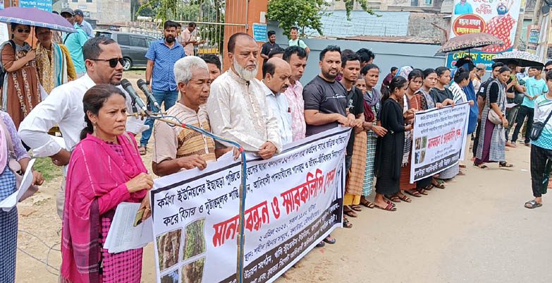 কুলাউড়ায় আদিবাসীদের পানজুম ও জীবন-জীবিকার নিরাপত্তা চেয়ে মানববন্ধন